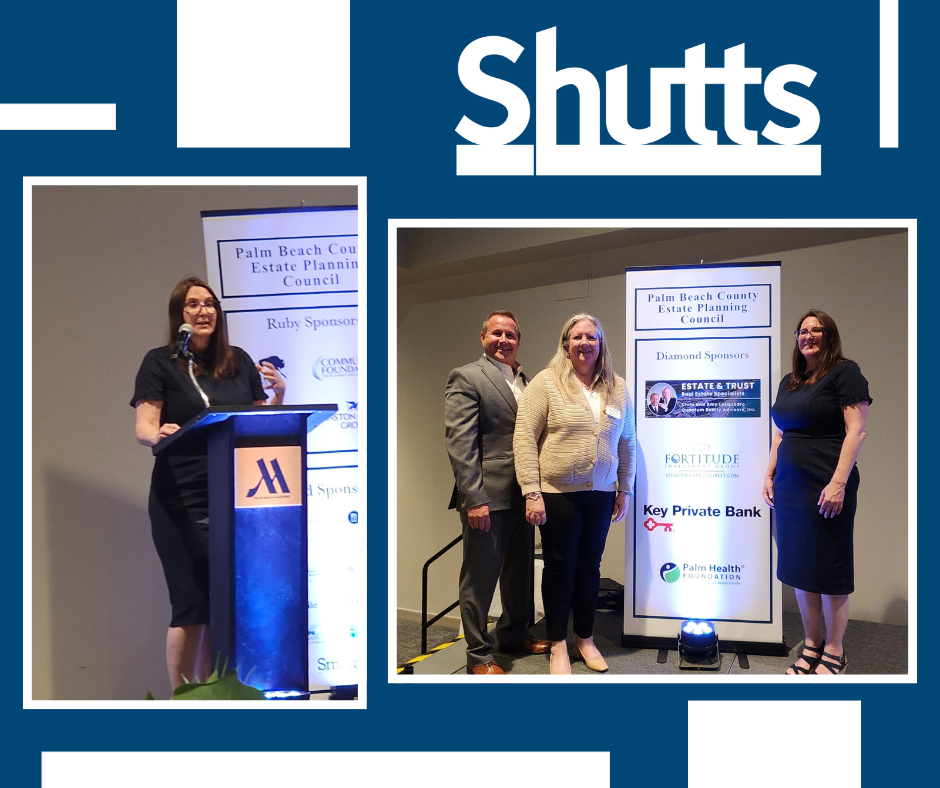 Shutts & Bowen LLP West Palm Beach partner Shelly Wald Harris recently spoke to the Palm Beach County Estate Planning Council, where she presented on “The Trustee’s Duty to Inform and Account.”