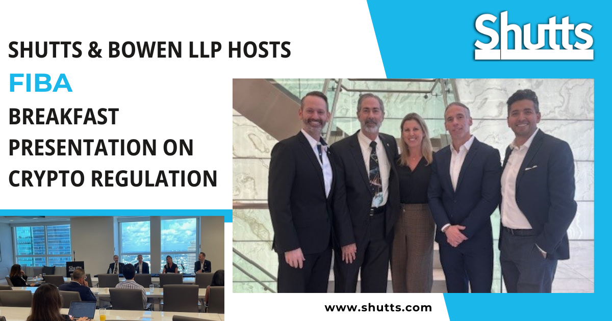 On September 16, Shutts & Bowen LLP hosted a Financial & International Business Association (FIBA) breakfast presentation at its Miami office focusing on the evolution of cryptocurrency regulation under the current administration.
