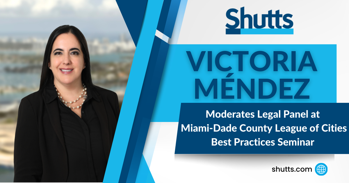 Shutts & Bowen LLP Miami partner Victoria Méndez recently moderated the legal panel titled “Legal & Ethical Considerations When Exercising Quasi-Judicial Authority: What Local Elected Officials Should Know” at the Miami-Dade County League of Cities Best Practices Seminar.